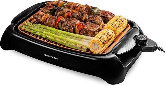 - CONVENIENCE AT ITS FINEST – Making mouth-watering meals for your family is easier with OVENTE Indoor Electric Grill. The 13 x 10-inch non-stick plate is ideal for searing or cooking multiple foods at once. Serve sizzling steak, chicken skewers, kabobs, bacon, salmon; the list goes on.